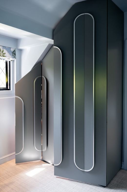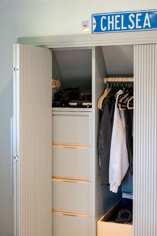 The fluted doors worked well in Ben’s room for both the wardrobe and to house