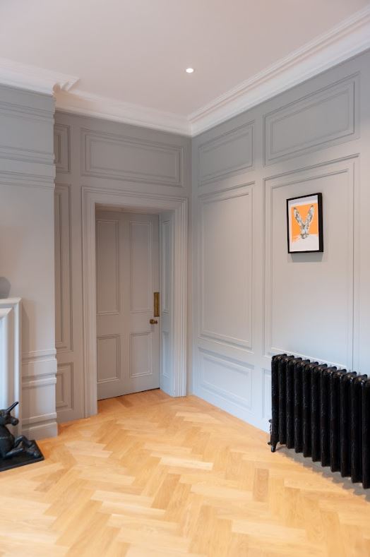 These bespoke panels gave the large, high-ceilinged rooms a grand and opulent feel. We opted for a hand painted finish to be in keeping with the traditional features of the home.